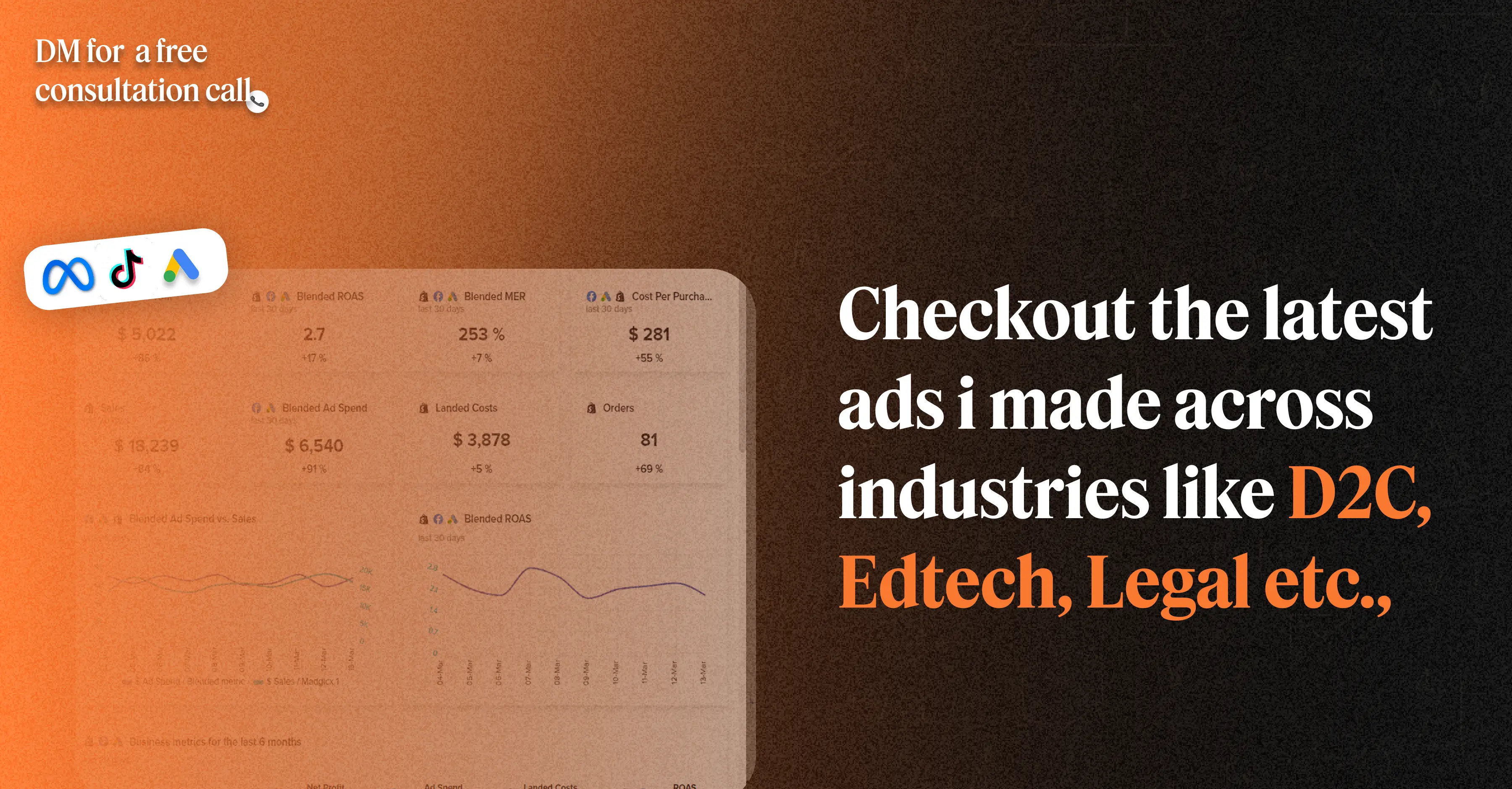 In the last few years, I’ve tested creatives 𝗼𝘃𝗲𝗿 𝟲 𝗠𝗶𝗹𝗹𝗶𝗼𝗻 𝗗𝗼𝗹𝗹𝗮𝗿𝘀 𝗶𝗻 𝗮𝗱 𝘀𝗽𝗲𝗻𝗱 across industries like 𝗗𝟮𝗖, 𝗘𝗱𝗧𝗲𝗰𝗵, 𝗟𝗲𝗴𝗮𝗹, 𝗣𝗼𝗹𝗶𝘁𝗶𝗰𝘀, 𝗮𝗻𝗱 𝗔𝘂𝘁𝗼𝗺𝗼𝘁𝗶𝘃𝗲, figuring out what works, what flops, and what makes people click that buy button or fill that form.